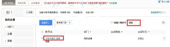 1、在子賬號管理后臺:http://zzh.zizhanghao.taobao.com ,找到該子賬號: