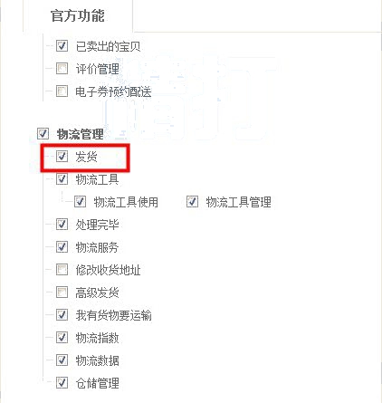 3、授權“發(fā)貨”(若需要查看發(fā)貨列表,則需單獨授權“查看發(fā)貨列表”,授權“查看發(fā)貨列表”必須安裝數(shù)字證書):