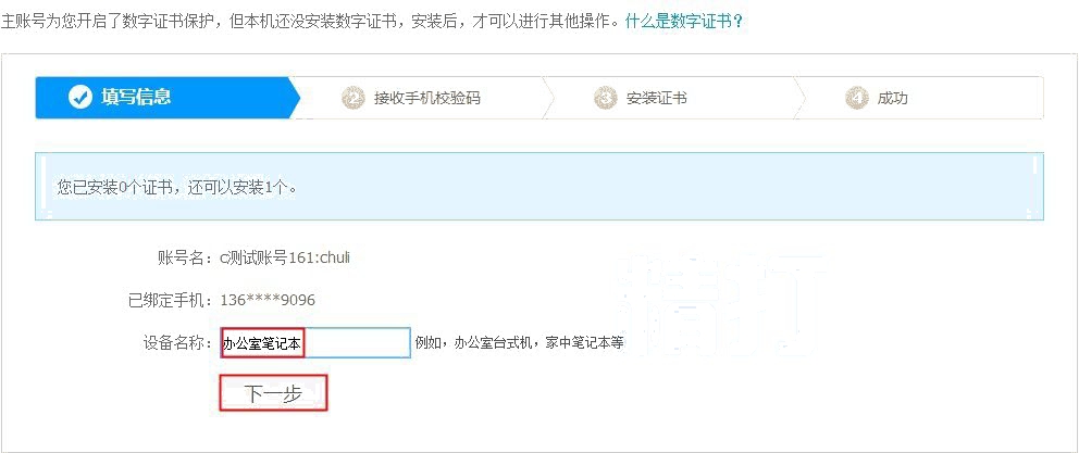 主賬號給子賬號開啟數(shù)字證書后,退出登錄,換子賬號登錄子賬號管理后臺,按如下步驟安裝數(shù)字證書: