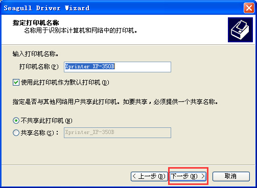 4.選擇自己的打印機型號,比如XP-350B(如果自己打印機是470,就選470),下一步